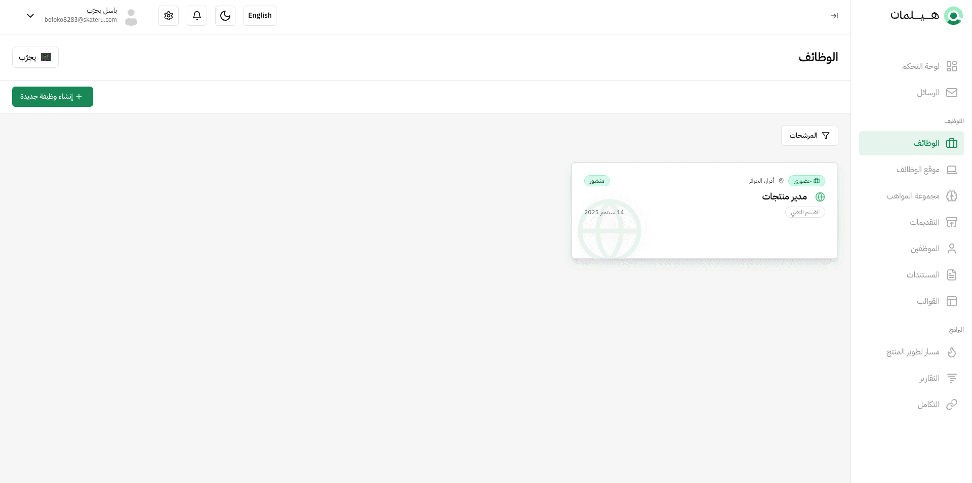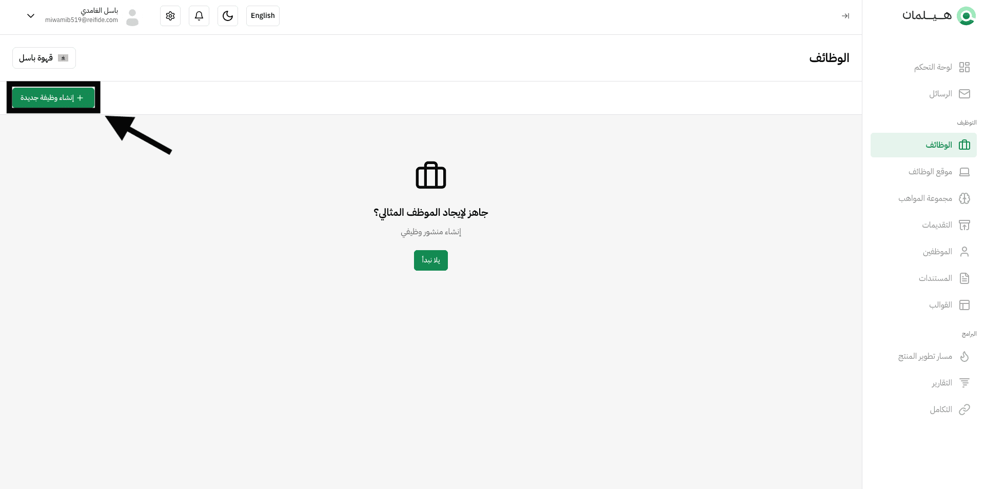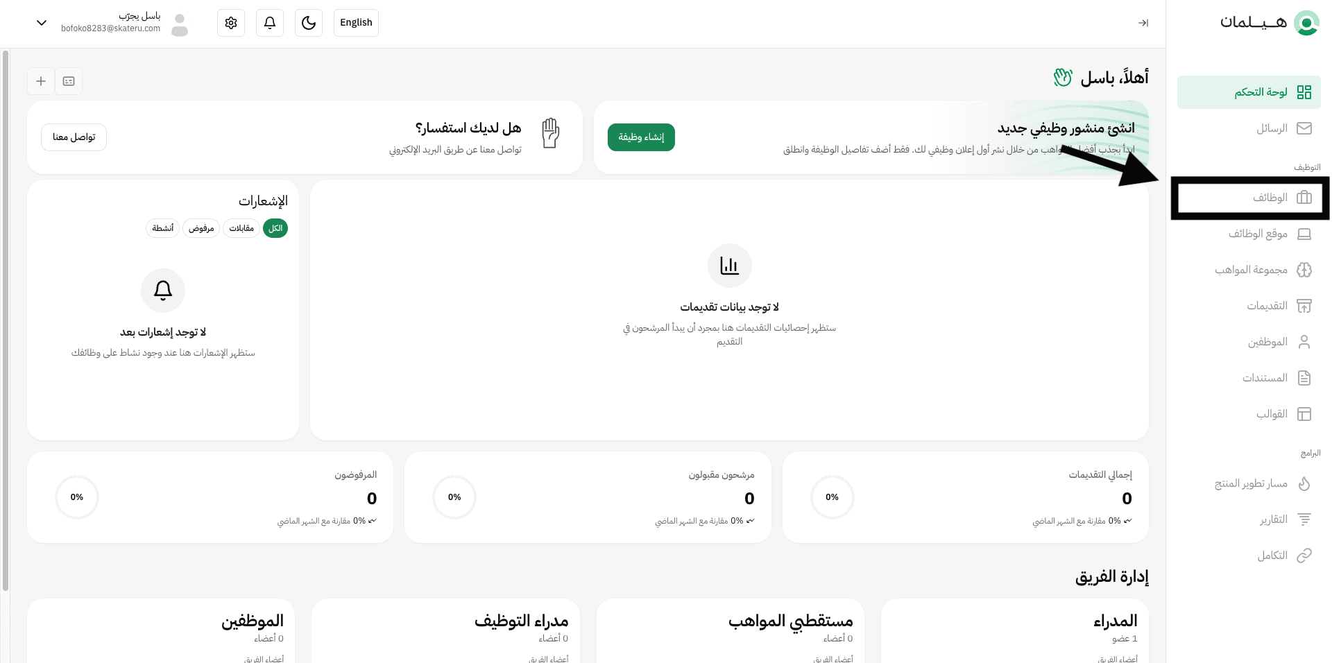 قم بالنقر على صفحة “الوظائف” من القائمة الجانبية
