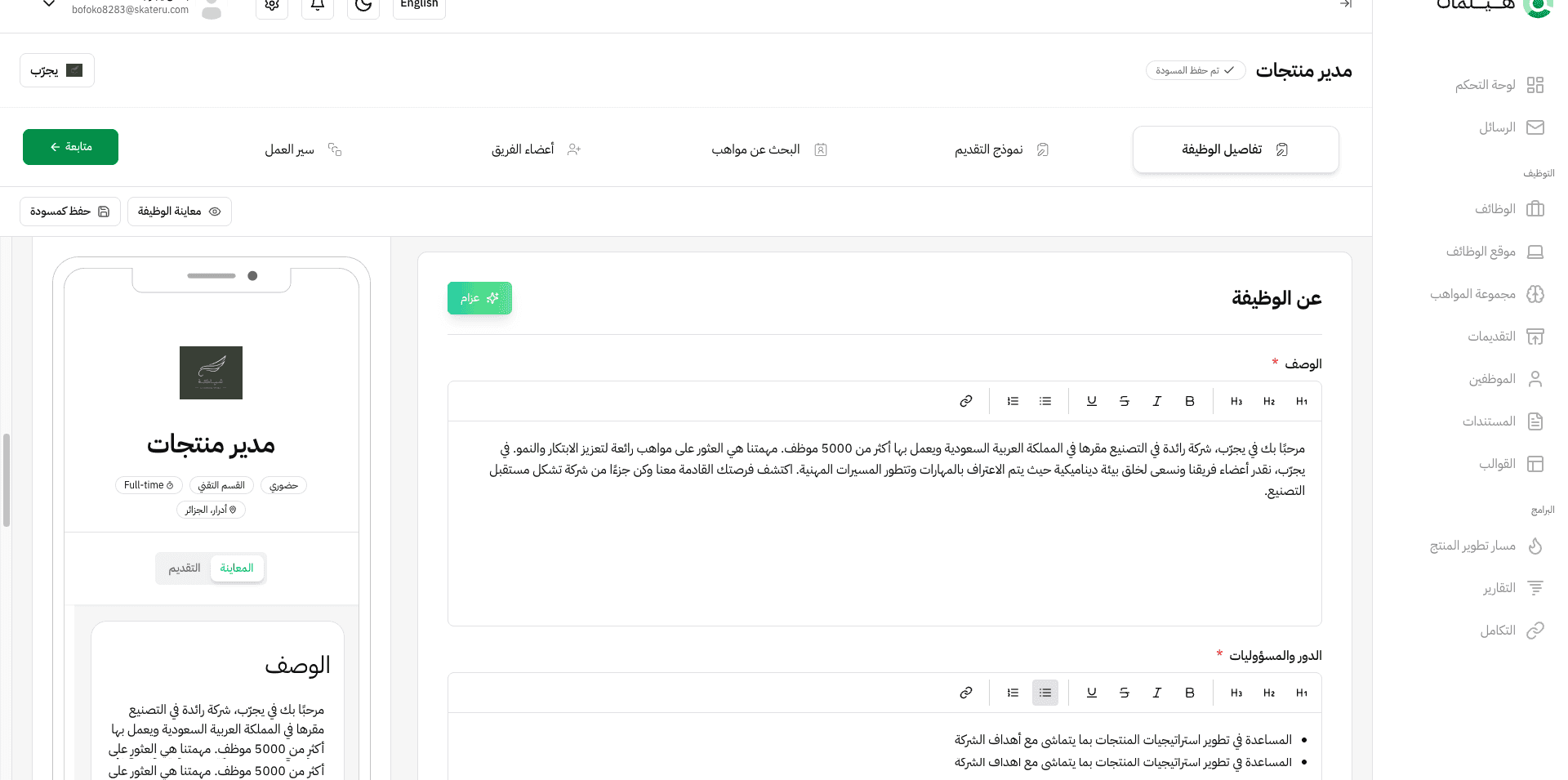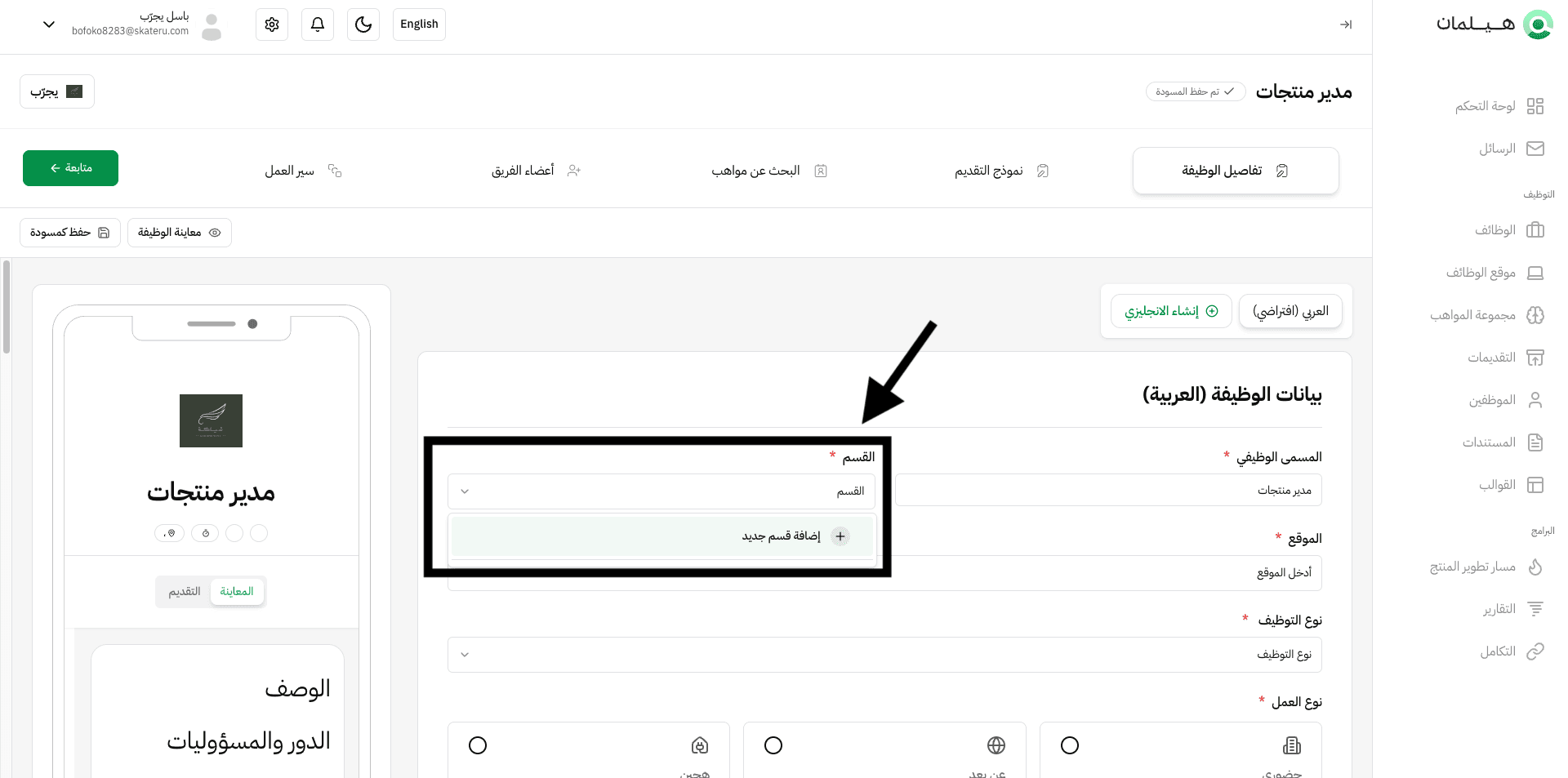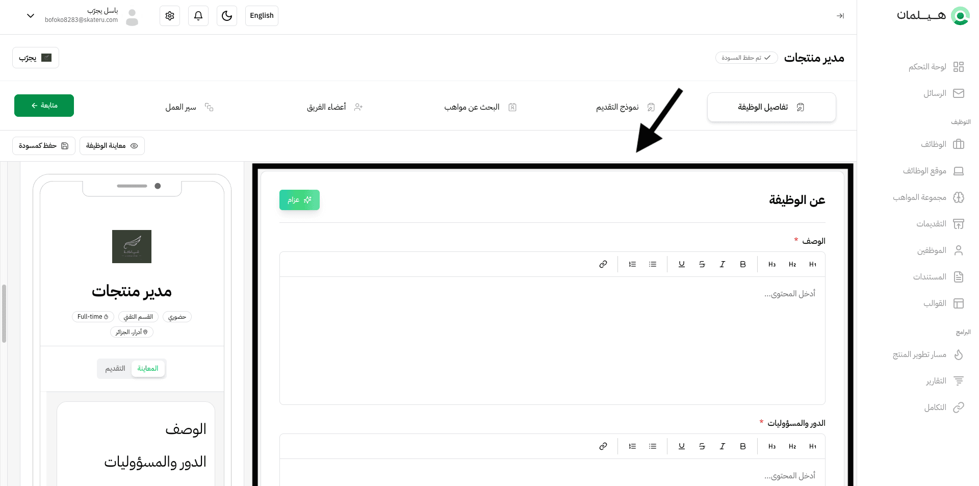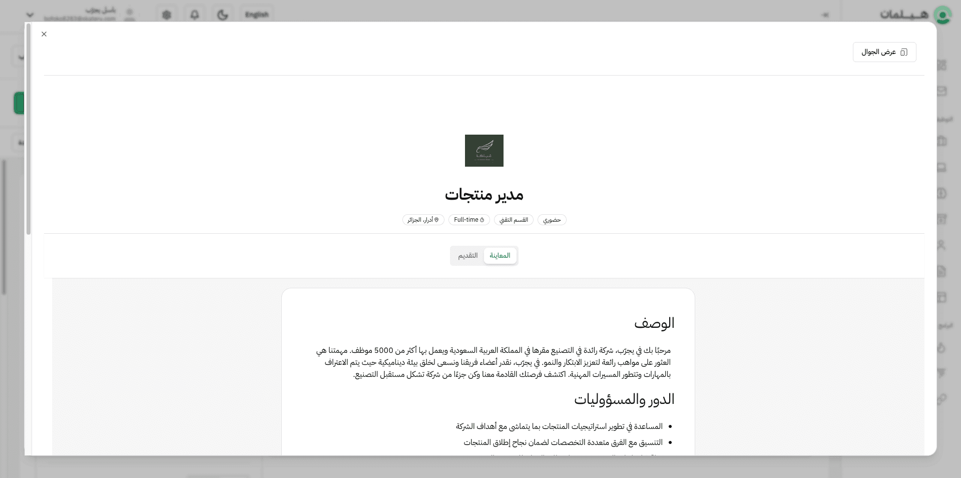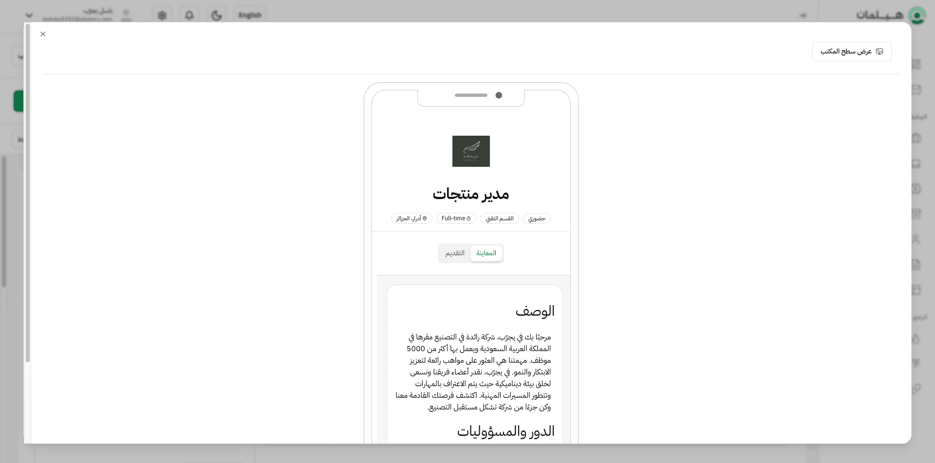 يمكنك قبل نشر الوظيفة معاينتها من خلال النقر على “معاينة الوظيفة” لترى كيف سيبدو شكلها للمتقدم