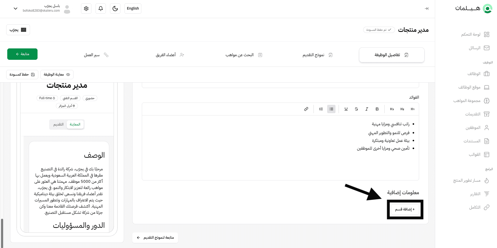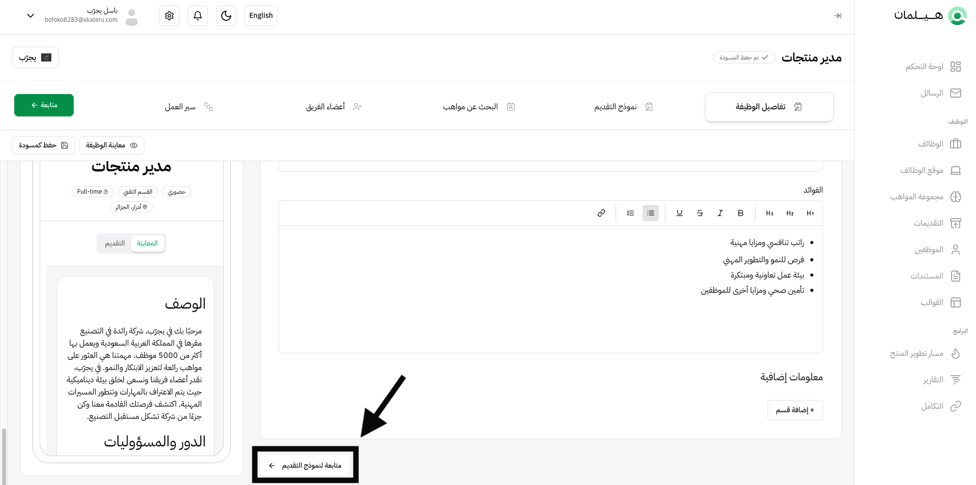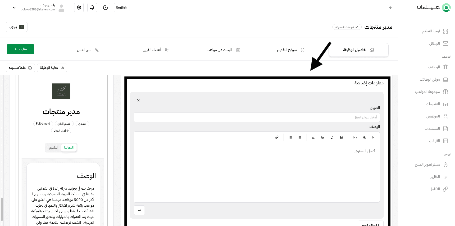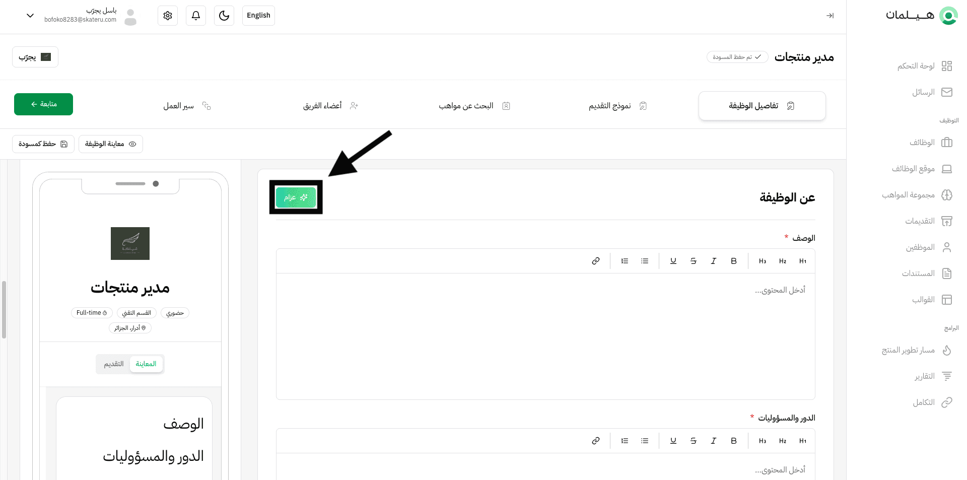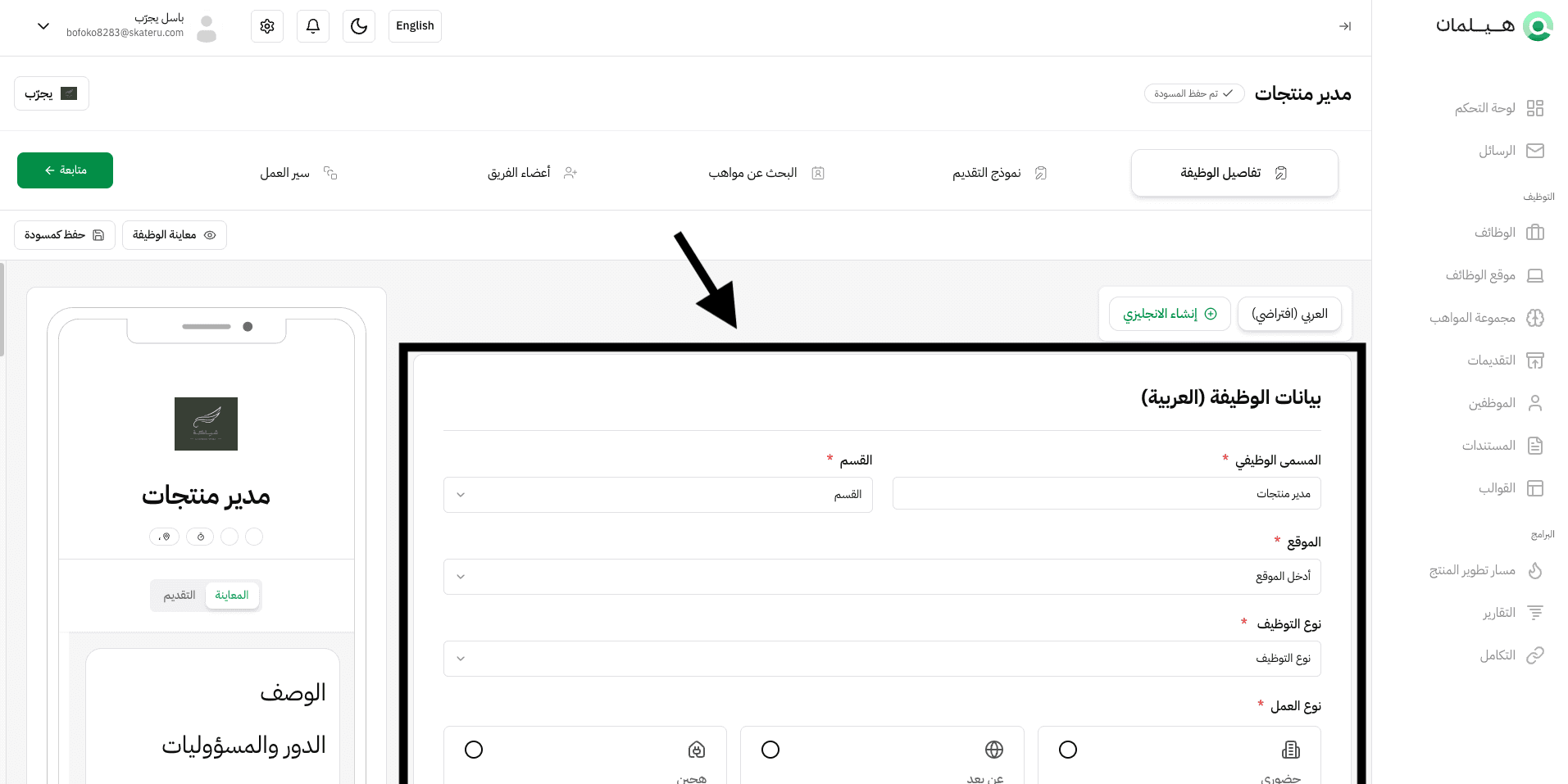 يمكنك قبل نشر الوظيفة معاينتها من خلال النقر على “معاينة الوظيفة” لترى كيف سيبدو شكلها للمتقدم