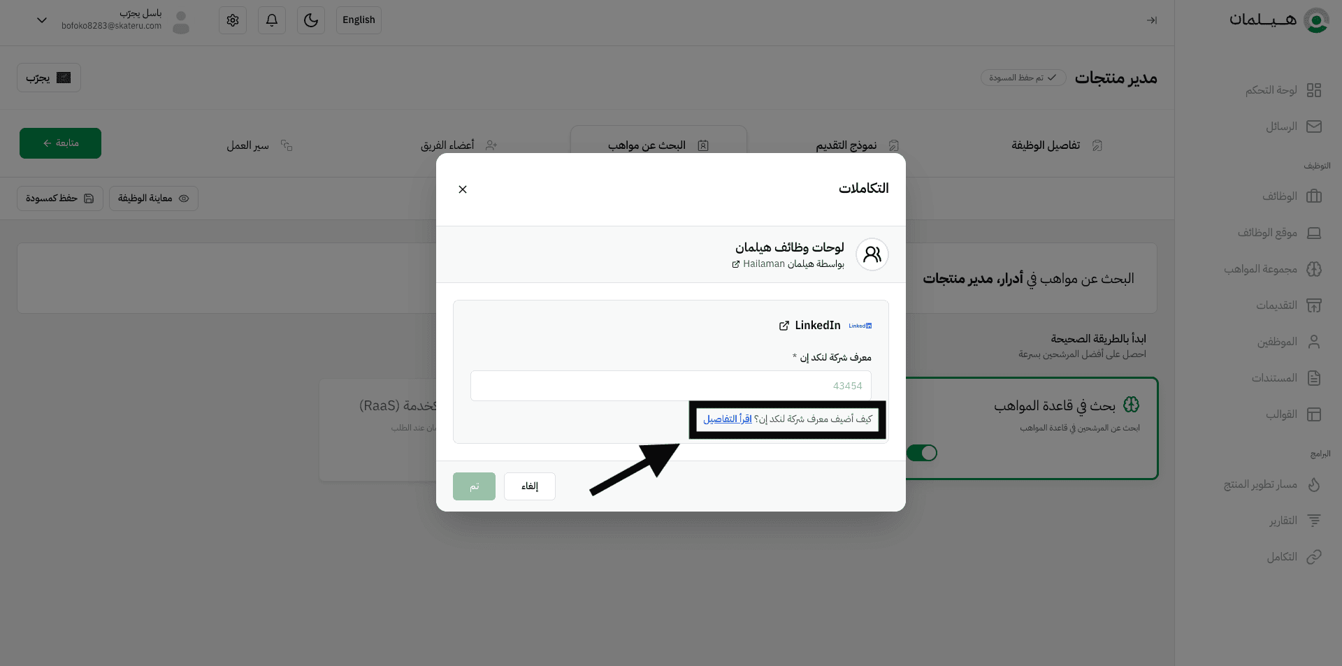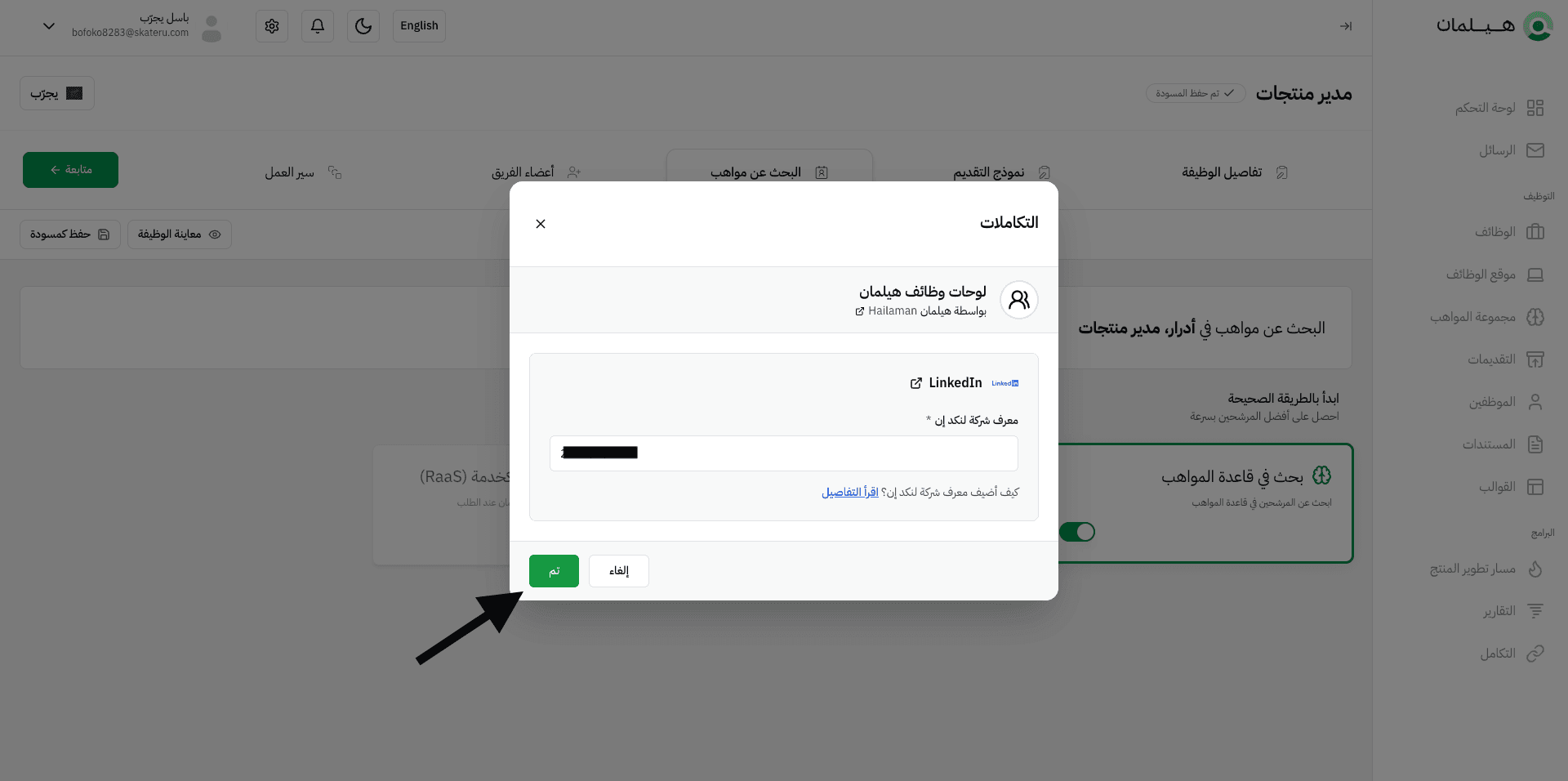 بعد ذلك سيطلب منك تعبئة المعرف الخاص بالشركة على منصة لينكدإن لإكمال التفعيل