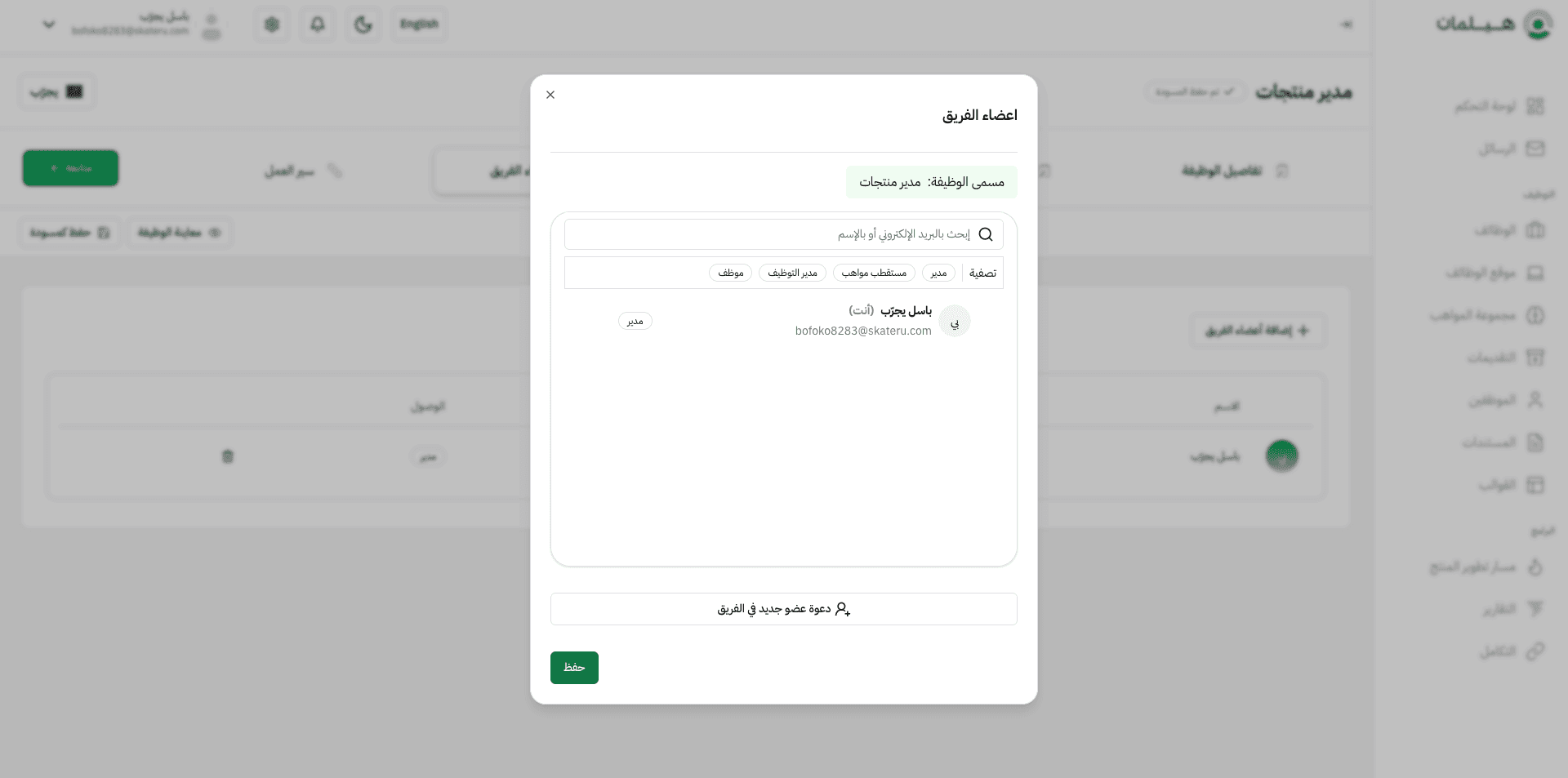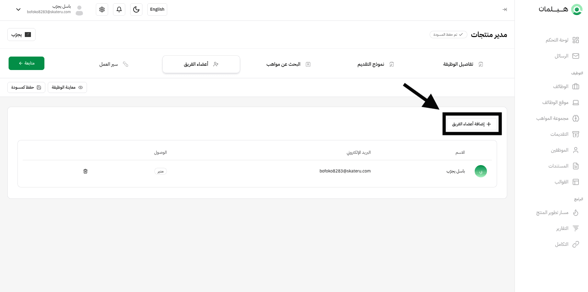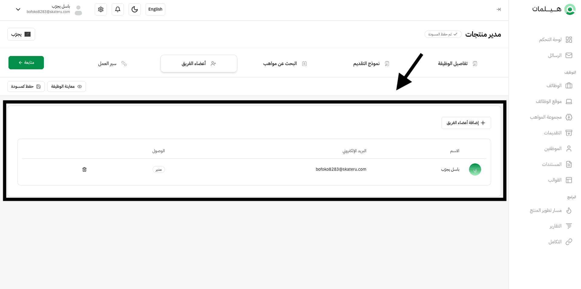 في قسم “أعضاء الفريق” ستجد جميع الموظفين الذين يمكنك تعيينهم على هذه الوظيفة
