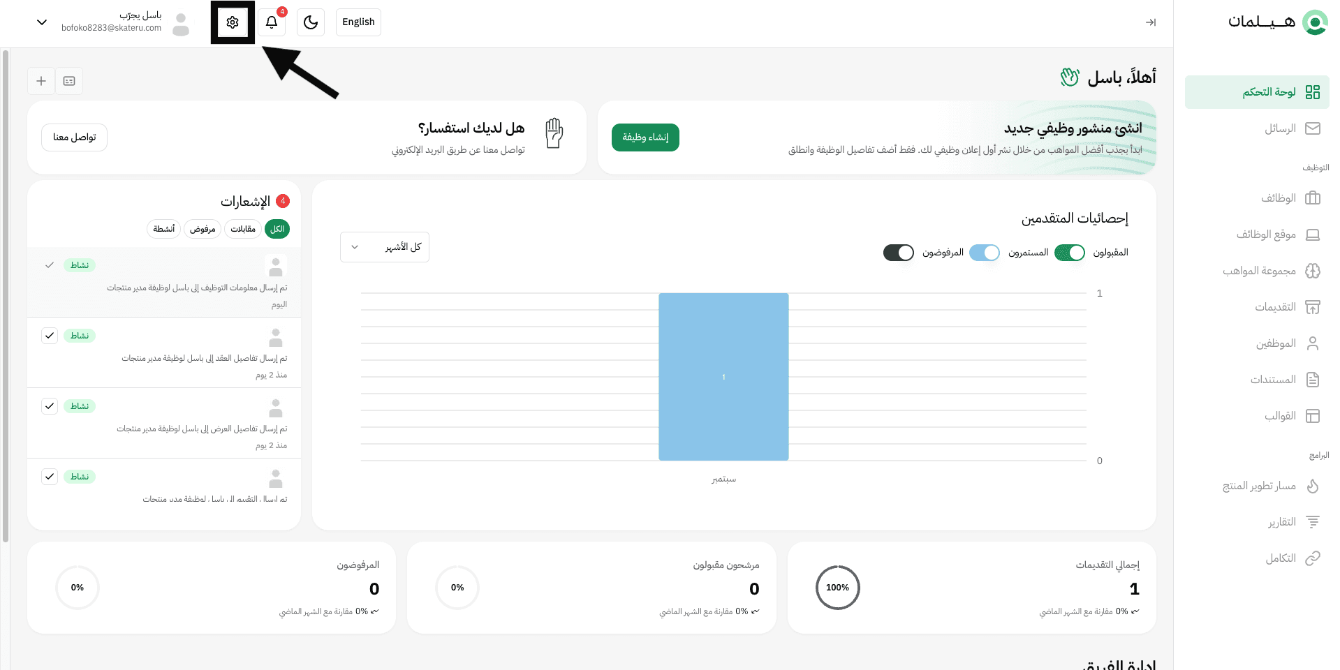 من أعلى الصفحة يمكنك النقر على الإعدادات