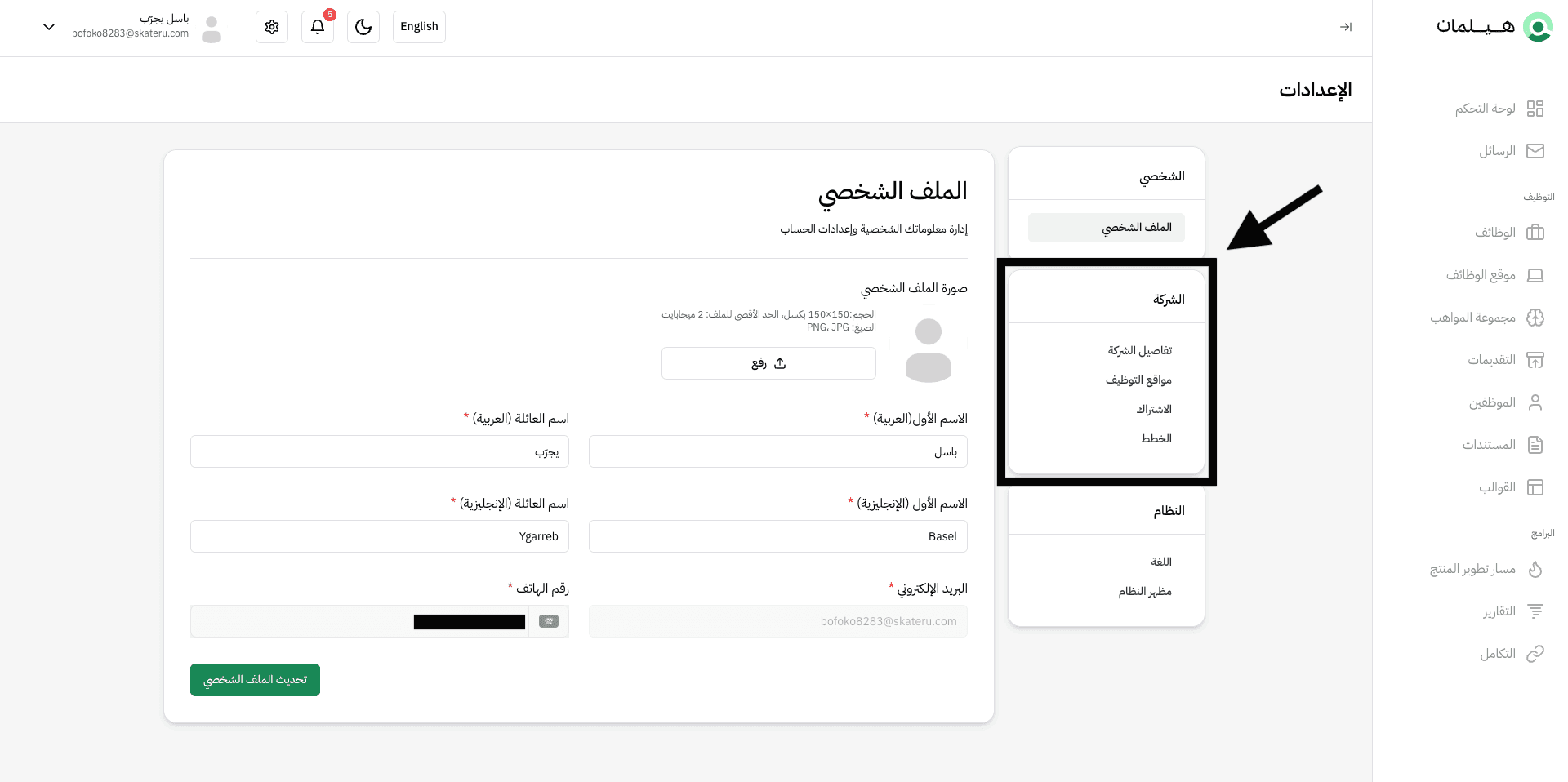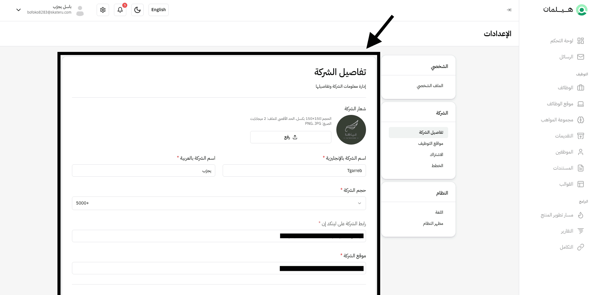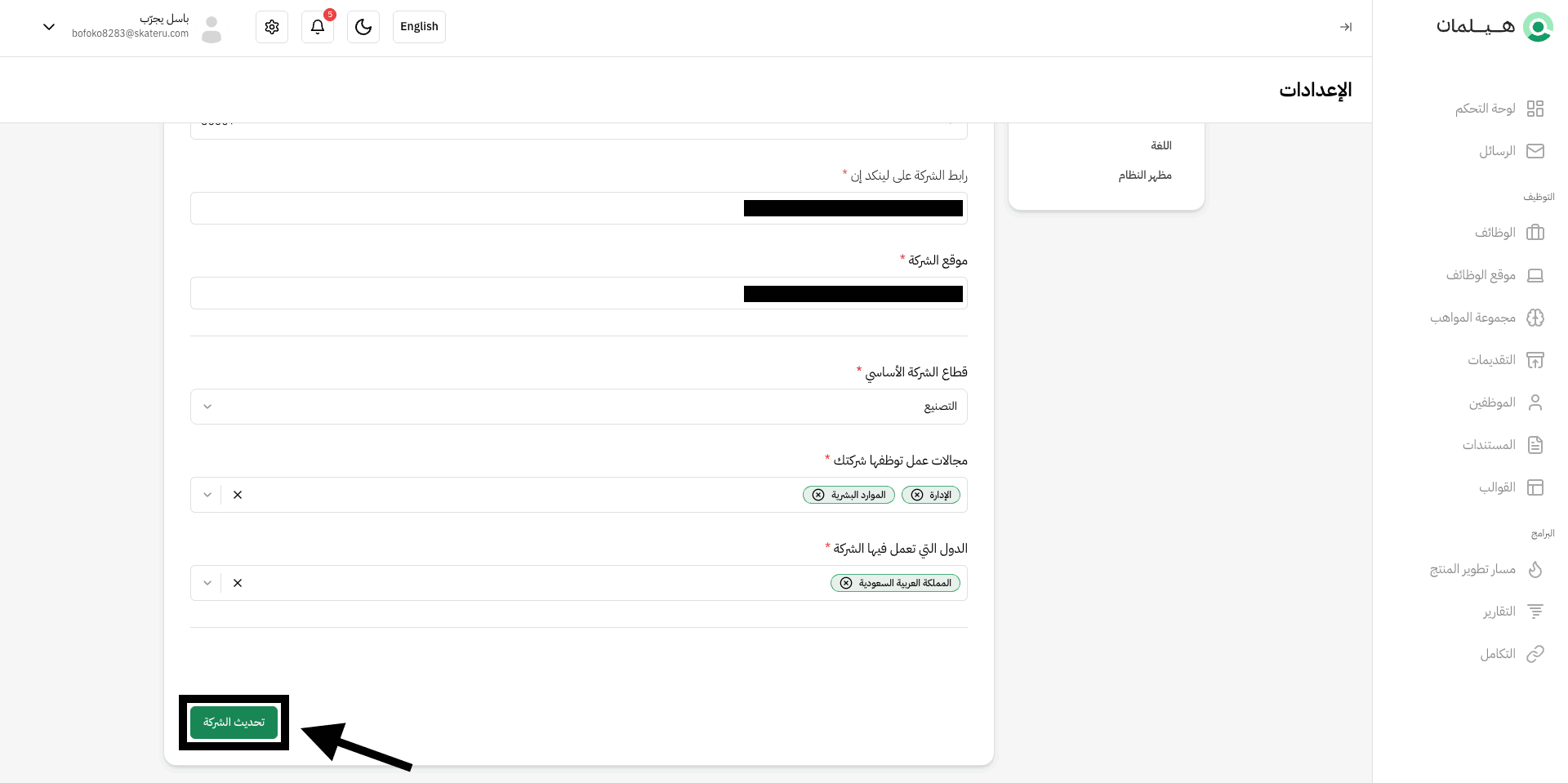 بعد الإنتهاء قم بالنقر على “تحديث الشركة” لحفظ جميع التغييرات