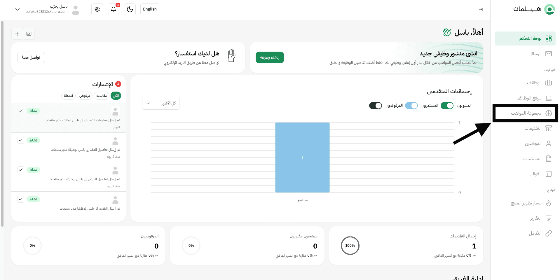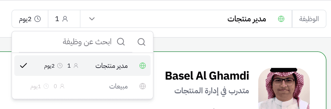يمكنك من القائمة بالأعلى القيام بتحديد الوظيفة التي تريد استقطاب المواهب بها