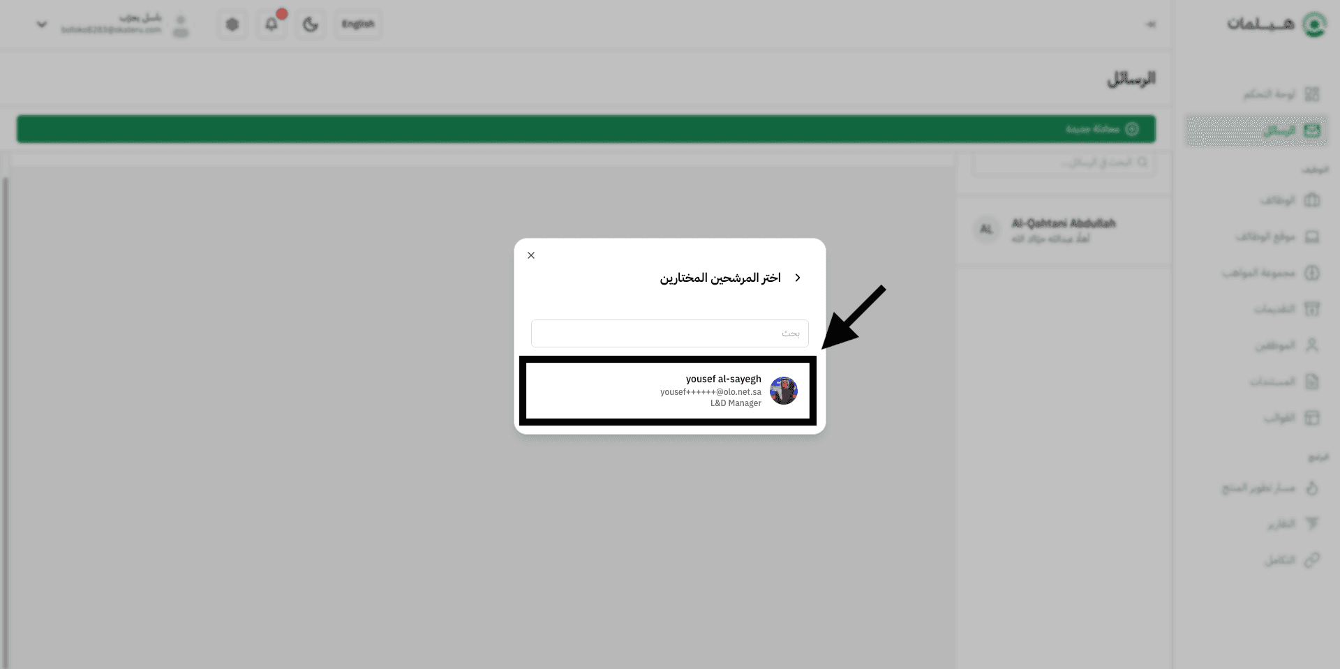 يمكنك رؤية المرشحين المسجّلين لديك، قم باختيار من تريد بدء المحادثة معه