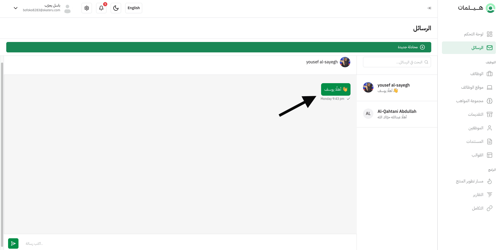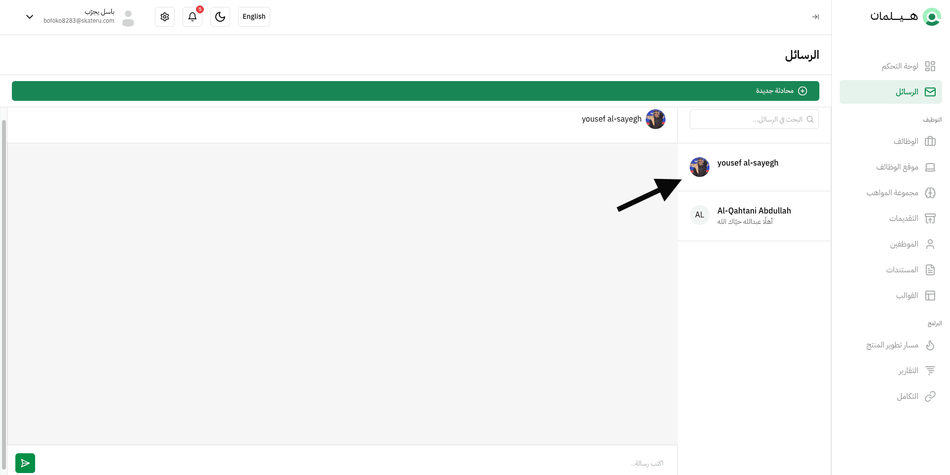 قم بالنقر على “الرسائل” من القائمة الجانبية