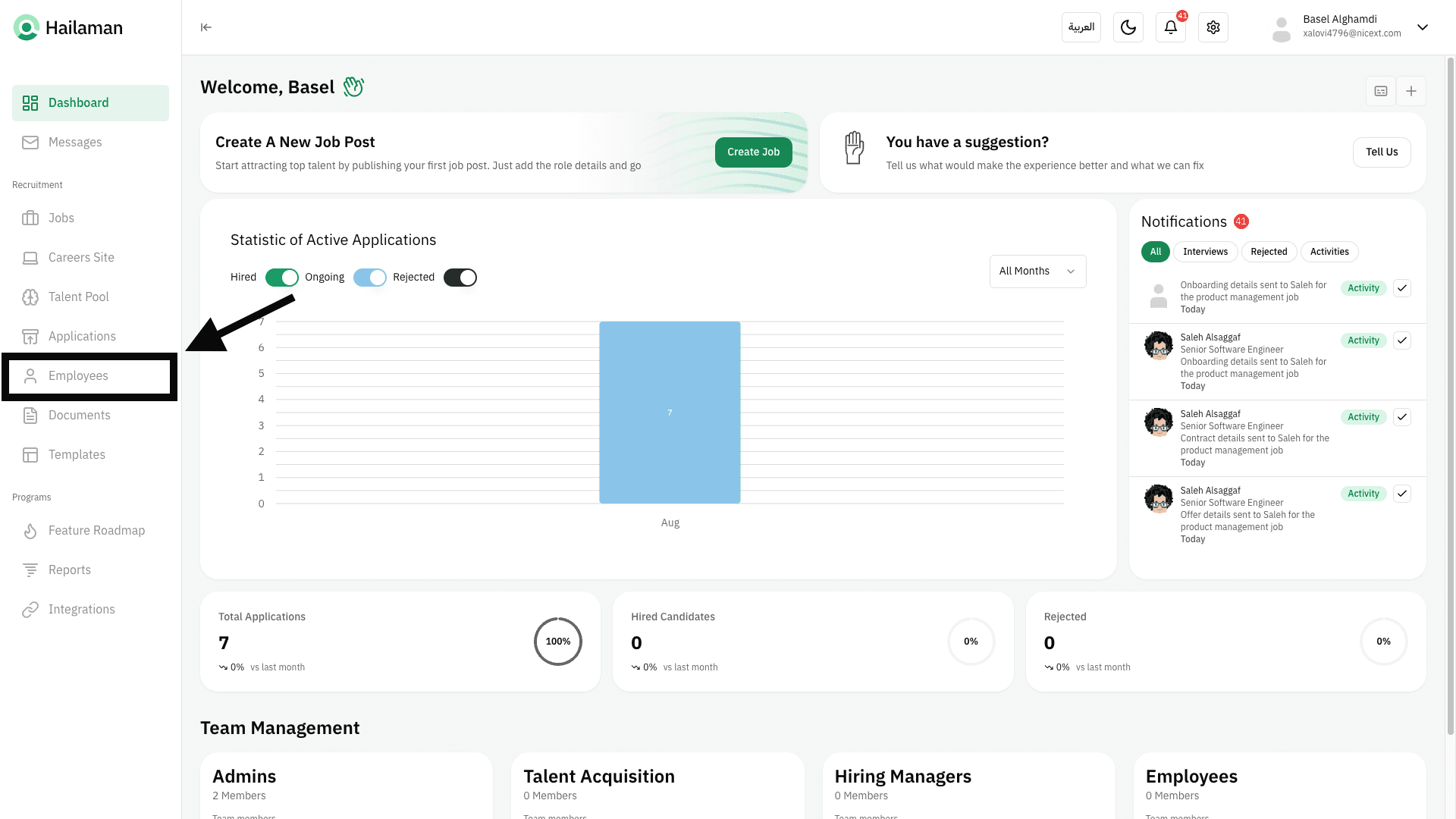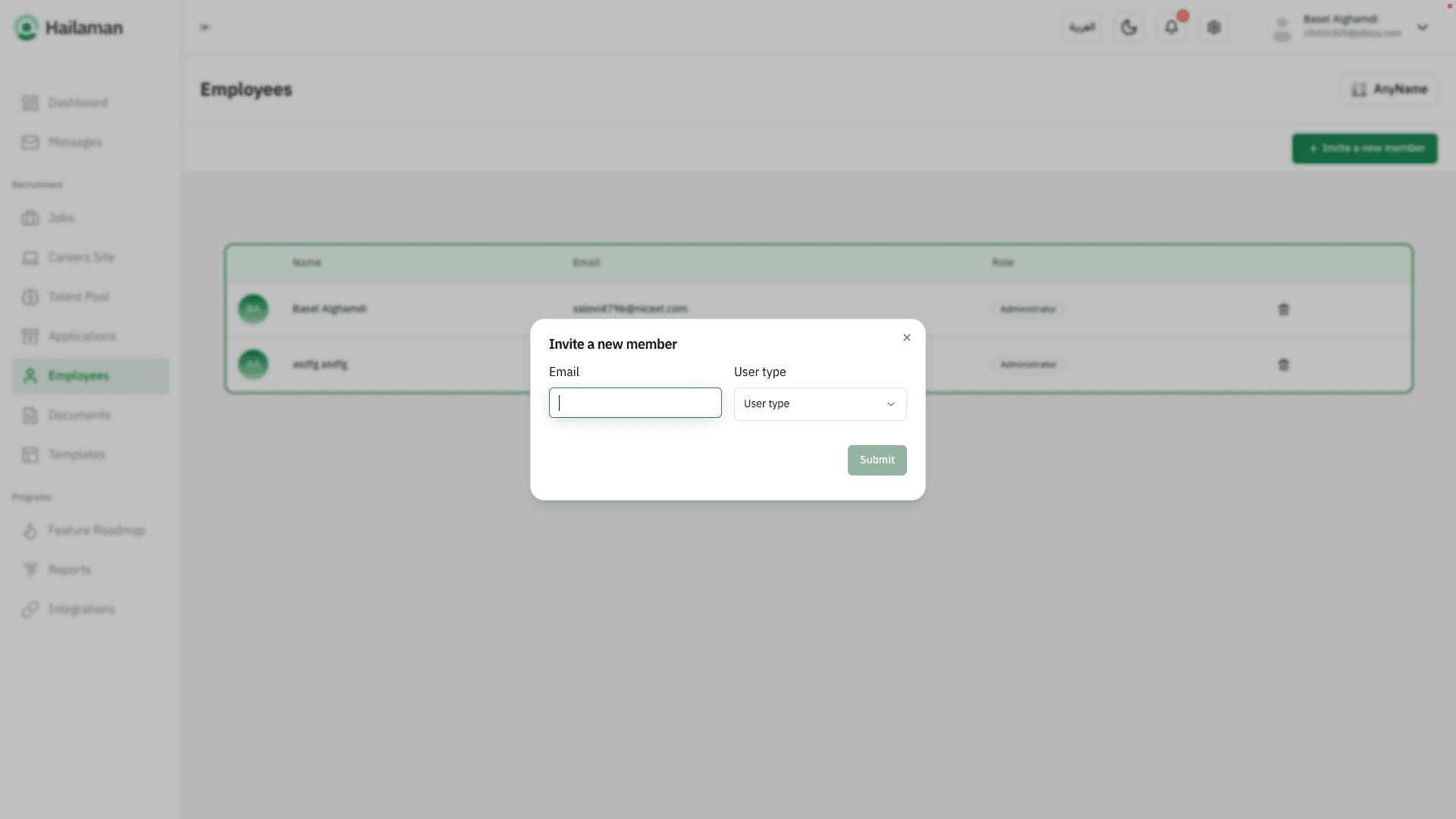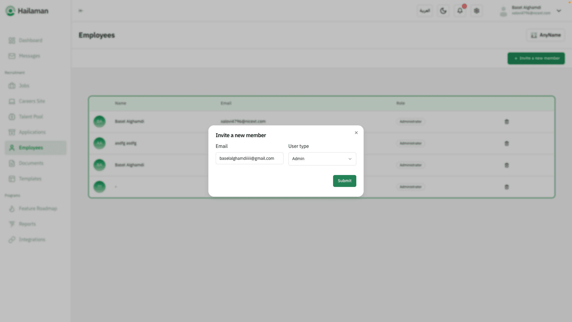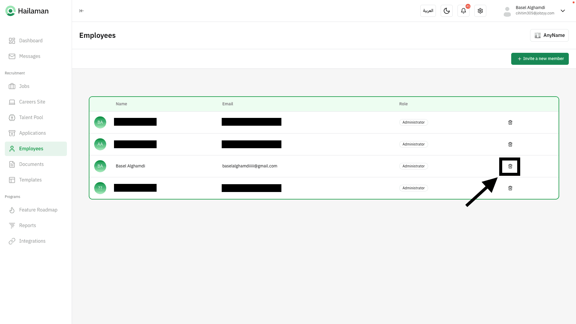 You can add a new employee by clicking on “Invite New Member” at the top.