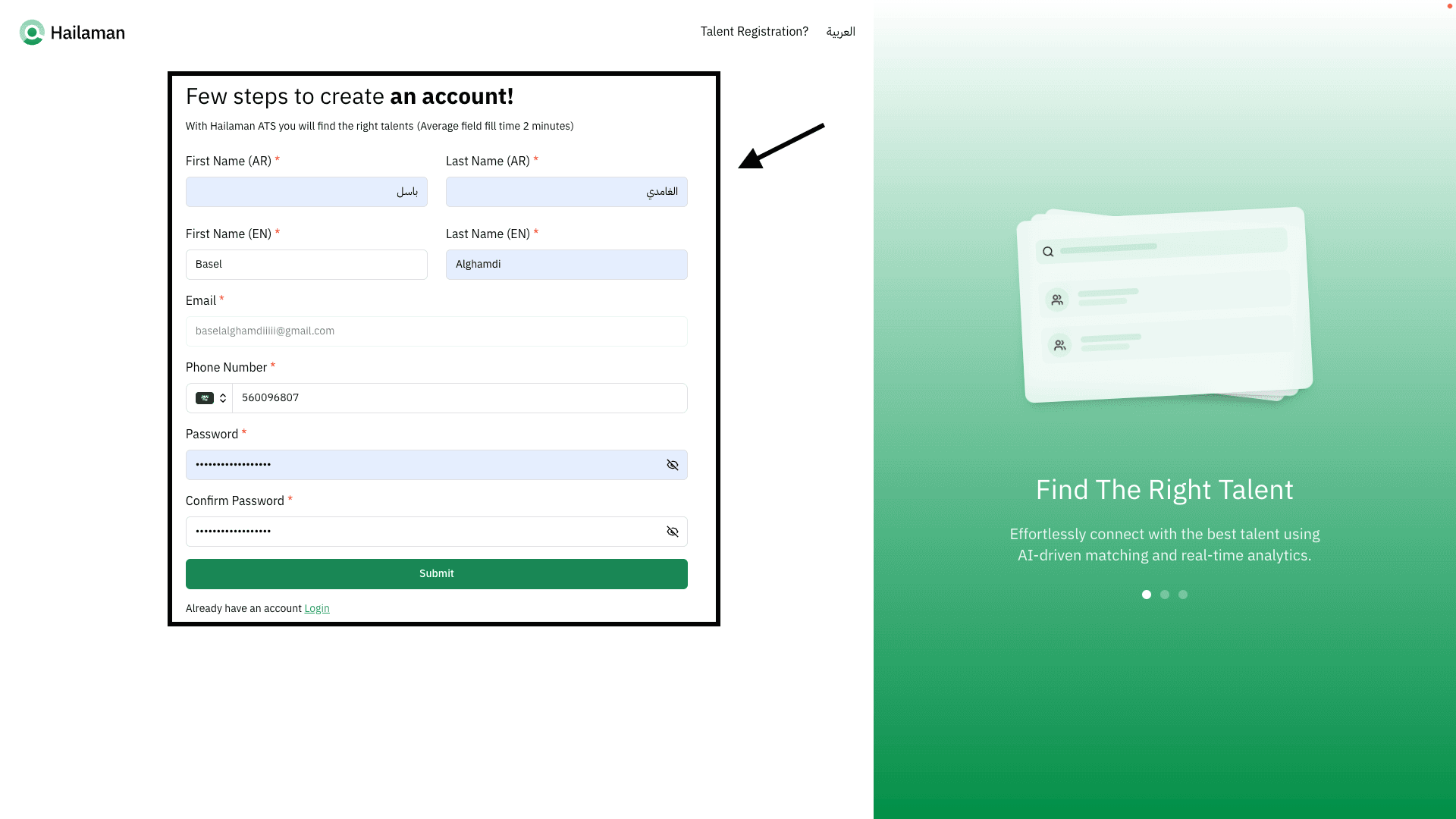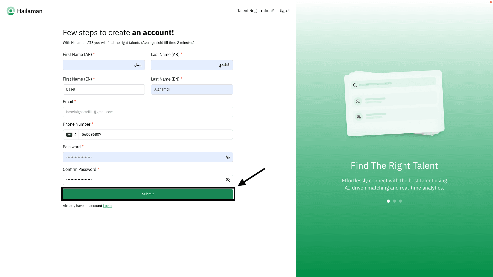 After filling in the information, the employee clicks on “Submit” to save all data.