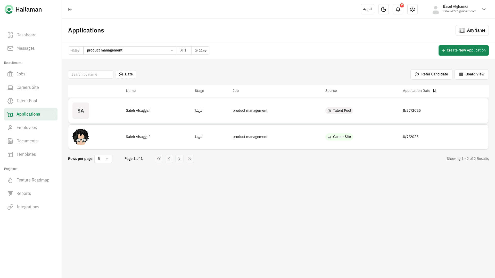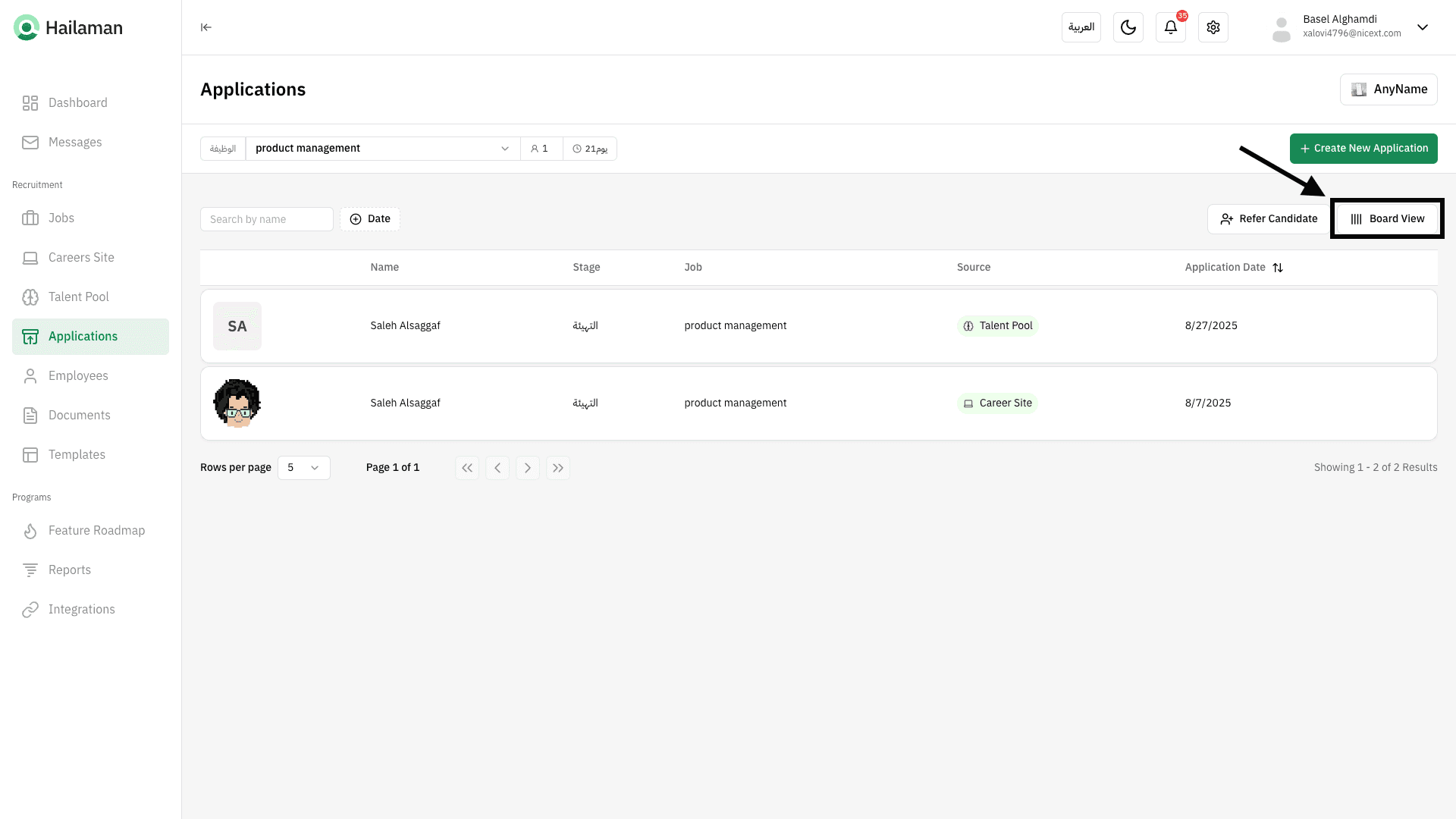 And by clicking on “View Board”, you can see the applications in a Kanban view.