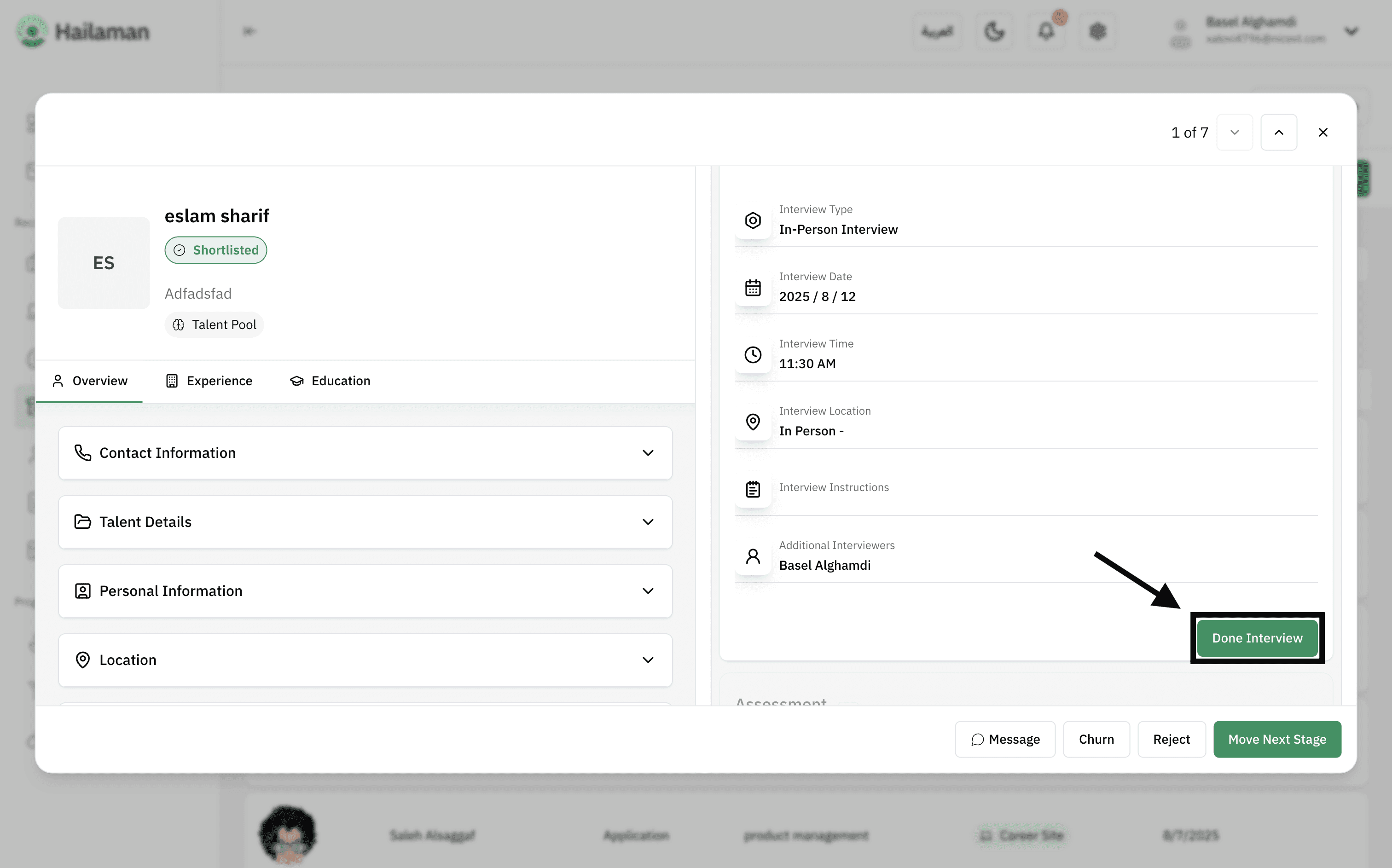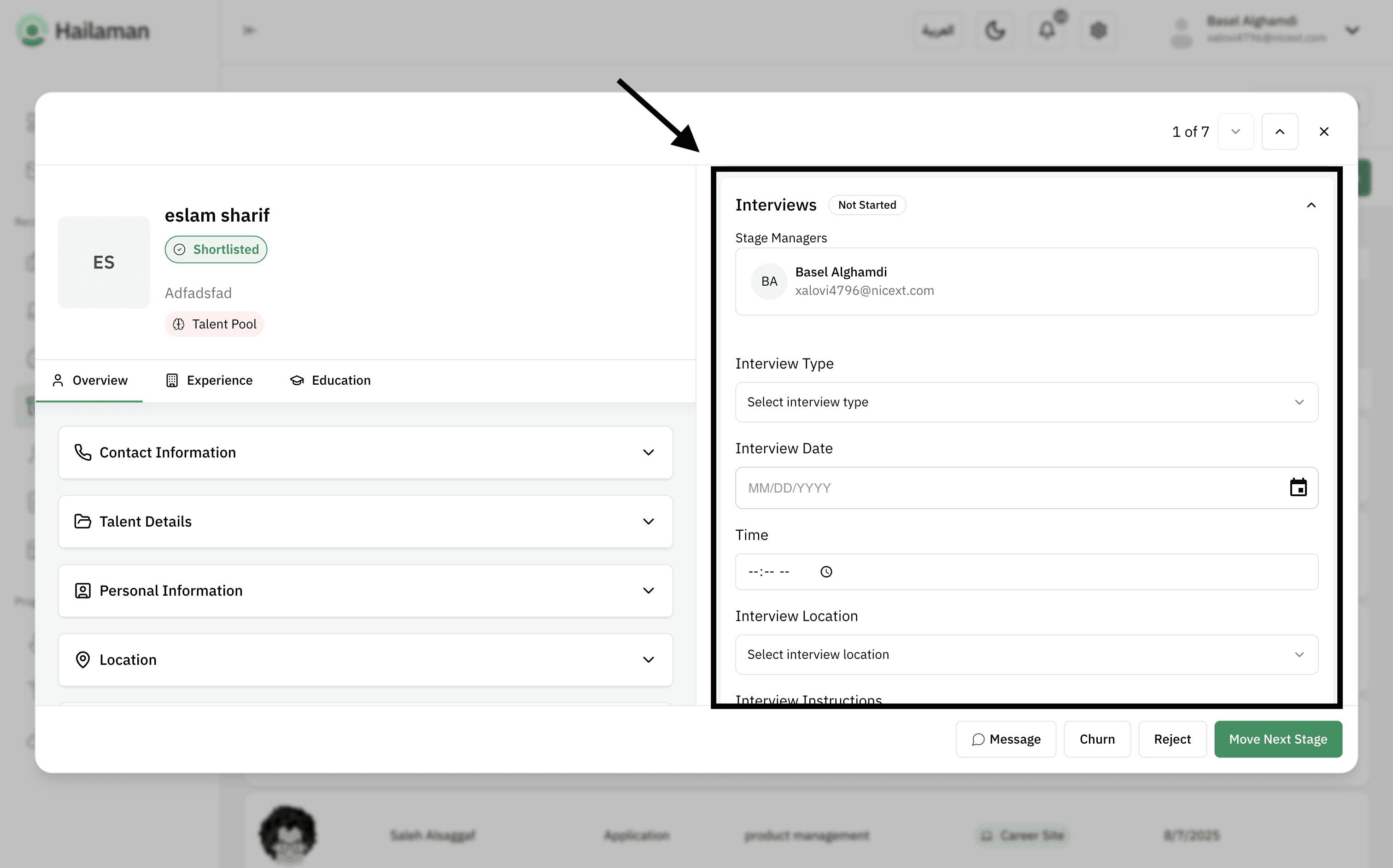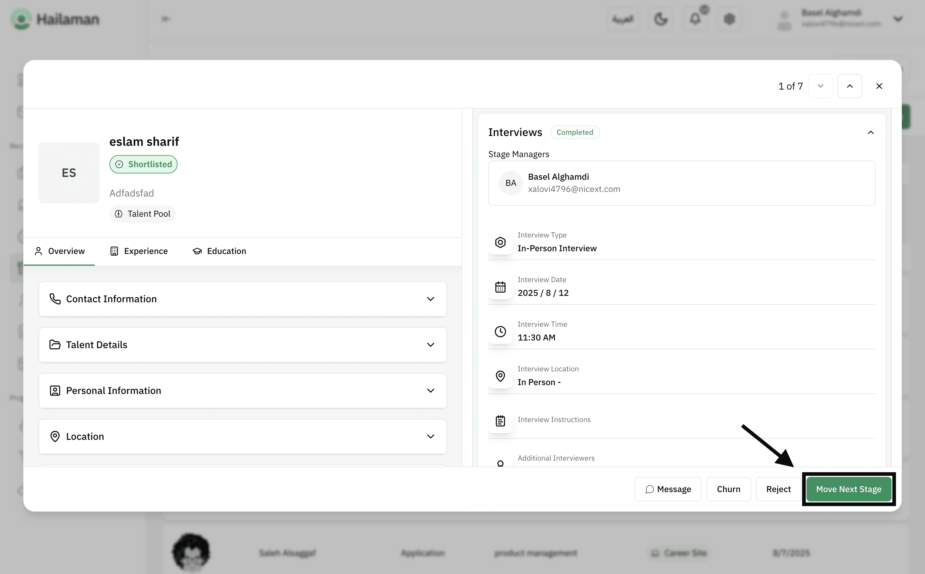 Then, by clicking on “Move Next Stage”, you can move the applicant from the “Interview” stage to the next stage.