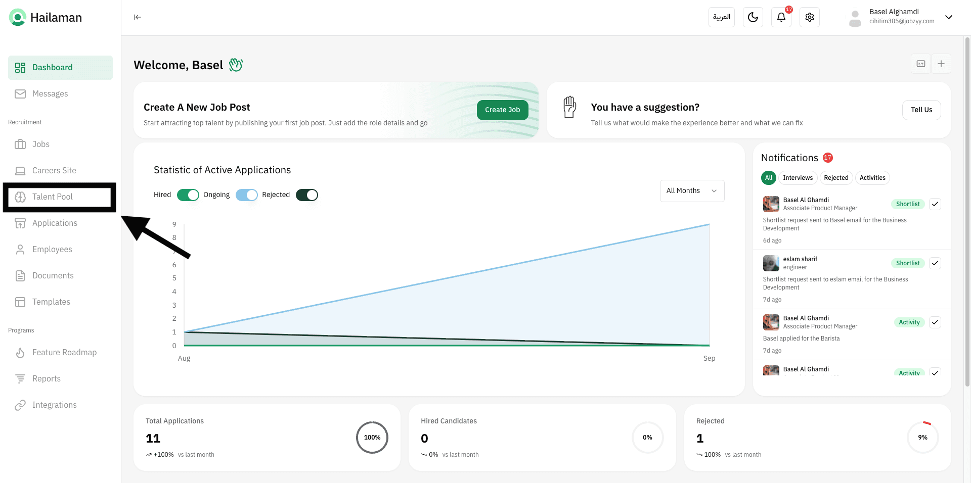 Click on “Talent Pool” from the sidebar.