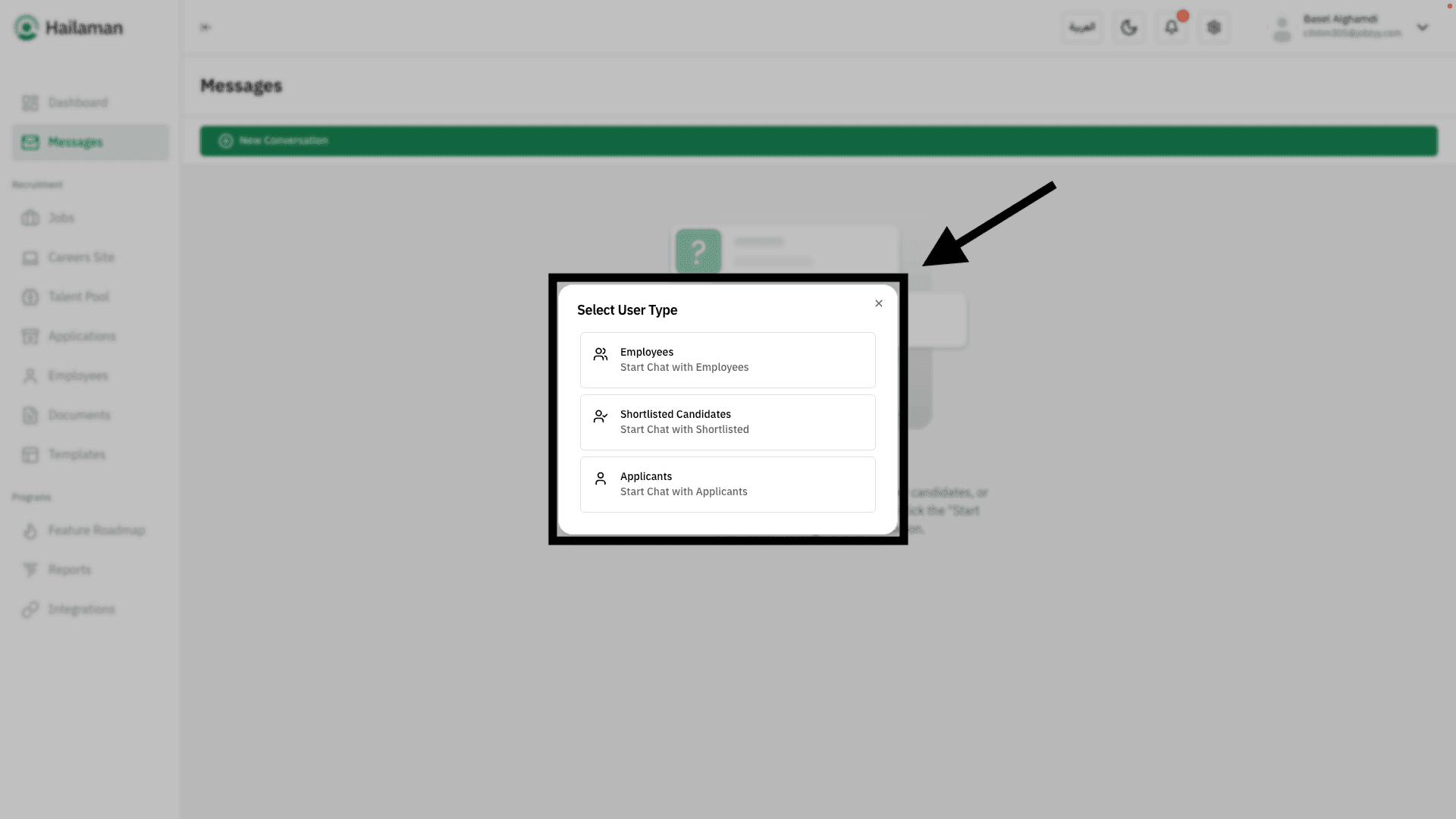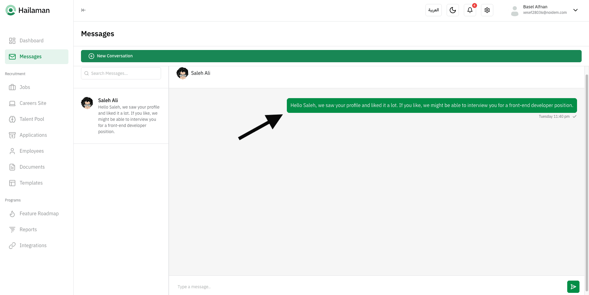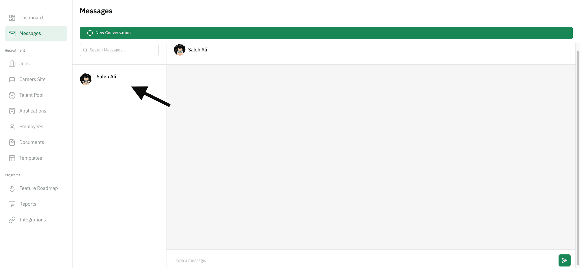 The conversation will then open, and you can begin messaging the candidate.