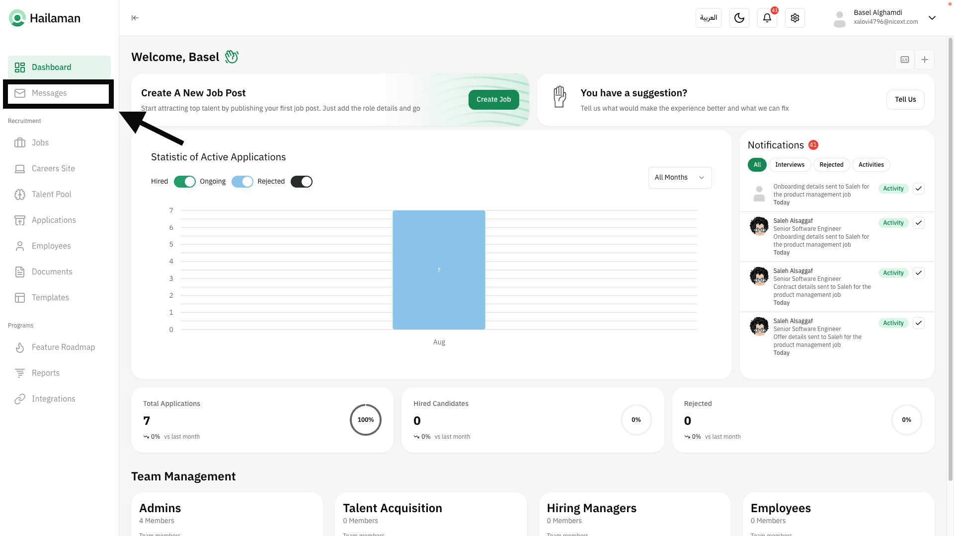 Click on “Messages” from the sidebar.