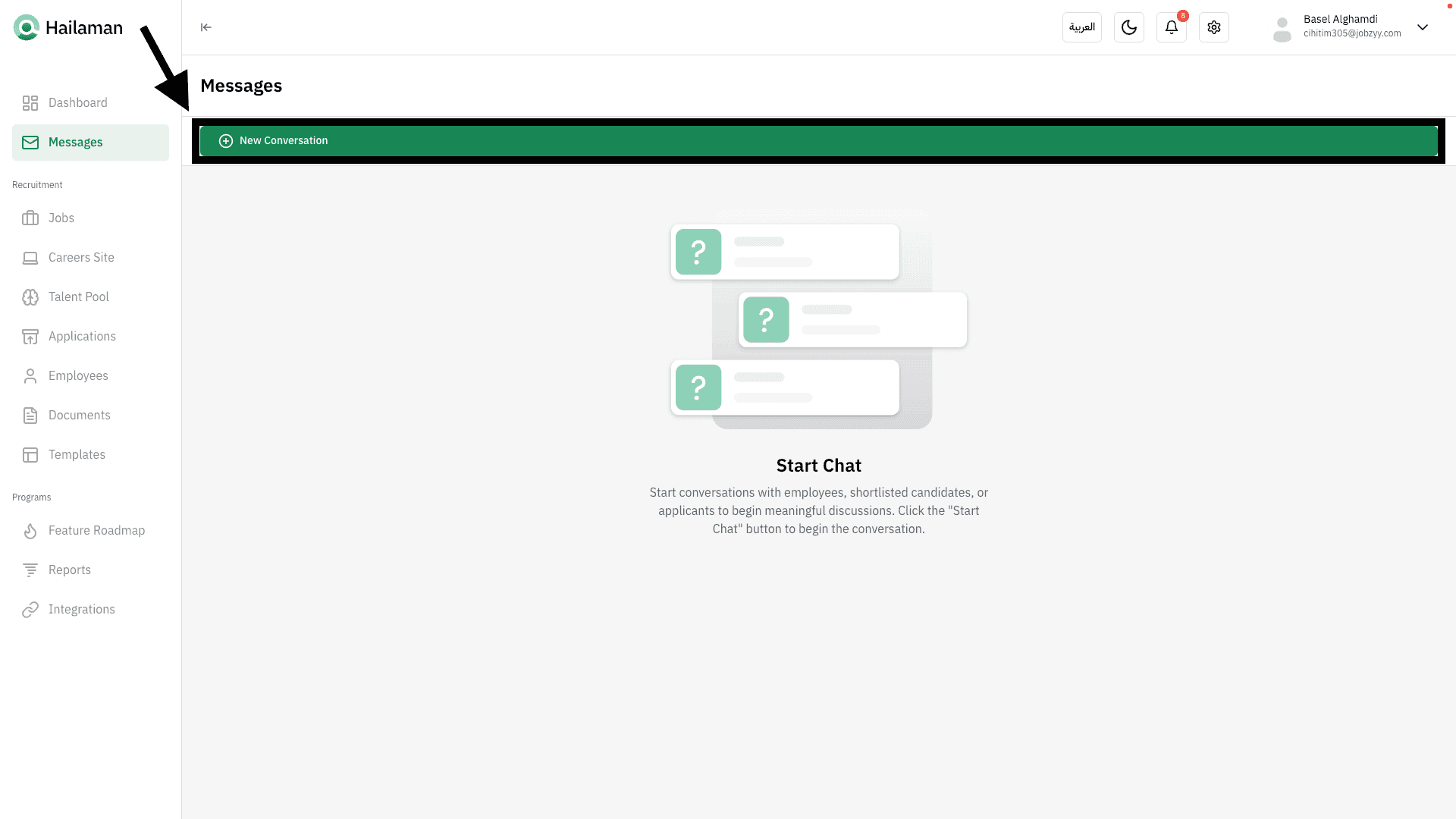 From here, you can click on “New Conversation”.